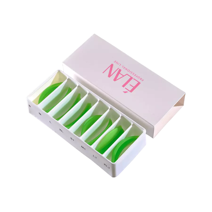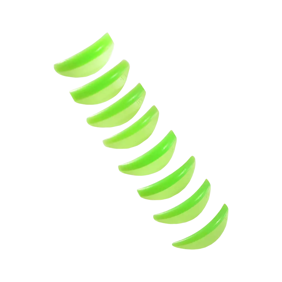 Ovi silikonski jastučići su opremljeni dvostrukim krugovima posebno dizajniranim za podizanje. Pedantno su napravljeni od visokokvalitetnog, mekog silikona sa mat teksturom, obezbeđujući vrhunsku fiksaciju za kapak i sprečavajući neželjeno klizanje. Njihov klasičan, ali asimetričan oblik je skrojen tako da stvori izraženije kovrče, posebno u spoljašnjem uglu očiju.